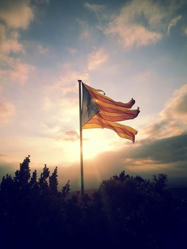 Keywords: flag sky catalonia ruins mast cloud sunset sun