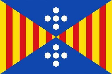 Keywords: Flag of Vilagrassa Spain.svg Bandera de Vilagrassa Lleida Espanya Bandera apaïsada de proporcions dos d'alt per tres de llarg quarterada en aspa amb els triangles superior i inferior blaus amb cinc disc blancs posats en creu cadascun de diàmetre 1/12 de l'alçària del drap i separats per 1/36 de la mateixa alçada centrats a cada un dels dos triangles; i els triangles dels costats grocs cadascun amb quatre pals vermells <ref> cite web http //www gencat cat/eadop/imatges/2981/99243018 pdf RESOLUCIÓ d'1 de setembre de 1999 per la qual es dóna conformitat a l'adopció de la bandera del municipi de Vilagrassa 2012-06-01 1999-09-23 pdf DOGC núm 2981 Generalitat de Catalunya català </ref> Bandera de Vilagrasa Lérida España Bandera de proporciones 2 3 cuartelada en aspa con los triángulos superior e inferior azules con cinco discos blancos puestos en cruz cada uno de diámetro 1/12 de la altura del paño y separados por 1/36 de la misma altura centrados en cada uno de los dos triángulos; y los triángulos de los lados amarillos con cuatro palos rojos <ref> cite web http //www gencat cat/eadop/imagenes/2981/99243018 pdf RESOLUCIÓN de 1 de septiembre de 1999 por la que se da conformidad a la adopción de la bandera del municipio de Vilagrassa 2012-06-01 1999-09-23 pdf DOGC núm 2981 Generalidad de Cataluña español </ref> en Flag of Vilagrassa in Lleida province Spain Flag quartered in saltire Blue top and bottom each with five white discs in the shape of a cross the discs as wide as 1/12 of the flag's height and separated from one another by 1/36 of the flag's height centred on each triangle Yellow hoist and fly each with four vertical red stripes Source http //flagspot net/flags/es-l-vgs html References reflist Own Nethunter 2008-08-30 insignia Catalonia <gallery>Bandera de Vilagrassa svg Bandera de Vilagrassa svg</gallery> Flags of municipalities of the province of Lleida Vilagrassa Vilagrassa SVG flags of Spain SVG flags with an aspect ratio of 3 2 Diagonal quartered flags |