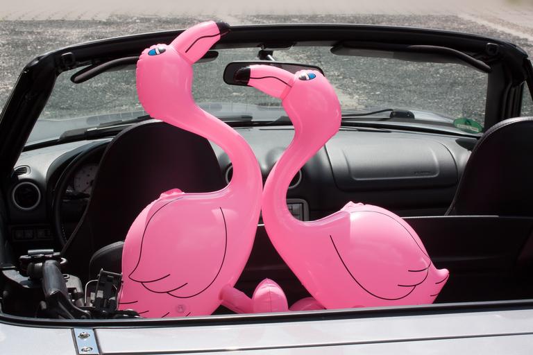 Keywords: flamingo inflatable pink romantic lovers auto cabriolet holiday vacation beginning travel decorative animal bird humor funny toys cheerful summer sun