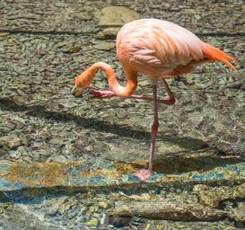 Keywords: flamingo one leg pink bird nature animal wildlife feather leg standing tropical exotic tropic natural colorful creature pose beak