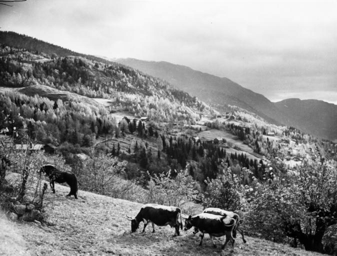 | Keywords: dyr fjell hester husdyr kyr landskap seljord telemark norway nor blackandwhite monochrome outdoor mountainside landscape black and white Tre kyr av rasen telemarksfe og en hest på beite i Flatdal. Fjellandskap i bakgrunnen. Tre kyr av rasen telemarksfe og en hest på beite i Flatdal. Fjellandskap i bakgrunnen. |