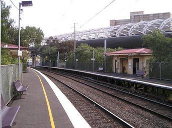 Keywords: 37 47S 144 56E Flemington Bridge railway station is located on the Upfield line in Victoria, Australia. It serves the northern Melbourne suburb of North Melbourne. Opened 10 April 1885. Attribution: Two stripe