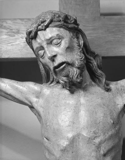 | Keywords: Flemish - Crucified Christ - Walters 27544 - Detail B.jpg Probably made for a rural church this nearly life-size Christ is crudely carved but the very simplicity of the figure contributes to its intensity and power The arms are necessarily made from separate pieces of wood The thin elongated body stretched arms pulled from their sockets and pained expression go beyond ordinary realism to emphasize the enormity of Christ's sacrifice The crucifix would originally have hung itself or with the mourning figures of the Virgin and John the Evangelist below Here it hangs with the panels of a German Passion altarpiece that originally had a sculpted central section That sculpture however would have been stylistically more sophisticated between 1480 1500 late Medieval wood with polychrome cm 148 5 144 27 5 accession number 27 544 32854 Joseph Brummer Paris and New York date of acquisition unknown by purchase Brummer Sale Parke-Bernet New York June 8 1949 Pt III no 219A David Rosen Baltimore 1949 by purchase Walters Art Museum Gift of David Rosen 1950 Religious Art of the Western World Dallas Museum of Art Dallas 1958 place of origin Flanders Belgium Walters Art Museum license Medieval art in the Walters Art Museum Flemish religious art in the Walters Art Museum Media contributed by the Walters Art Museum needs category review Media contributed by the Walters Art Museum needs artist update Religious art of Flanders 15th-century crucifixes |