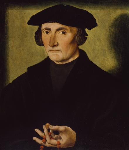 | Keywords: Flemish - Portrait of a Man Holding a Rosary - Walters 37251.jpg The unforgiving linear rendering of the man's face suggests the influence of Quentin Metsys 1466-1530 the leading painter in Antwerp during the early decades of the century The fact that the sitter chose to be portrayed fingering his red-coral rosary beads suggests that piety was important to his sense of identity He may also have been superstitious coral was not only beautiful and expensive it was believed to protect against evil between 1510 1520 Renaissance oil oak panel cm 39 33 5 accession number 37 251 30996 Henry Walters Baltimore prior to 1909 mode of acquisition unknown Walters Art Museum Henry Walters Acquired by Henry Walters before 1909 place of origin Antwerp Walters Art Museum license 2D Renaissance portrait paintings in the Walters Art Museum Flemish paintings in the Walters Art Museum Three-quarter view portrait paintings of men facing left Portraits with rosaries Portrait paintings with yellow background 1520s portrait paintings |