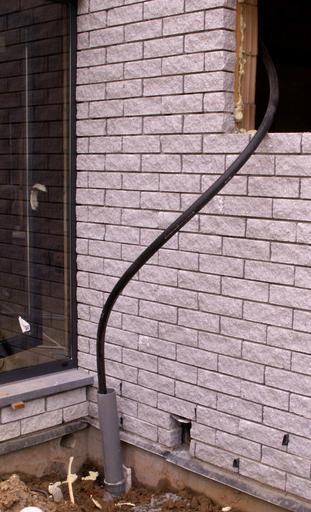 Keywords: FlexibleRainPipe.JPG en A picture of a rain pipe being installed on a house Note that the actual water transportation tube is flexible and is inserted into another PVC tube This is offcourse wasteful and environmentally-unfriendly and alternatives as a single tube of galvanized steel should be preferred Own KVDP 2008-06-20 Plumbing |