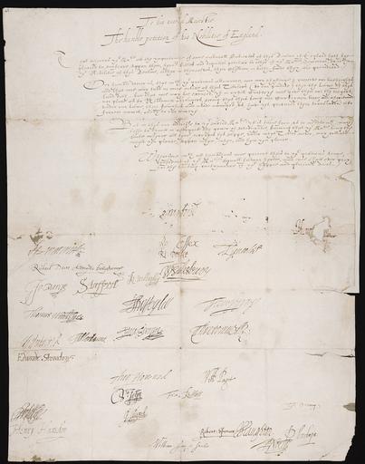 | Keywords: Flickr - Beinecke Flickr Laboratory - To his sacred maiestie , the humble petition of his nobilitie of England, (1621).jpg 1 p 56 x 44 cm Subjects Ardglass Thomas Cromwell Earl of 1594-1653 Bedford Francis Russell Earl of 1593-1641 Bergavenny Edward Neville Baron d 1622 Bolingbroke Oliver St John Earl of 1580 -1646 Campden Edward Noel Viscount d 1643 Chesterfield Philip Stanhope Earl of 1584-1656 Dacre Richard Lennard Baron d 1630 Darcy John Darcy Baron 1579-1635 Denny Edward Sir 1605-1646 Dorset Richard Sackville Earl of 1594 -1624 Dover Henry Carey Earl of ca 1580-1666 Dudley Edward Dudley Baron 1567-1643 Essex Robert Devereux Earl of 1591-1646 Gerard of Gerard's Bromley Gilbert Baron d 1622 Holles John Earl of Clare ca 1565-1637 Huntingdon Henry Hastings Earl of 1586-1643 James I King of England 1566-1625 Lincoln Theophilus Clinton Earl of ca 1600-1667 Lindsey Robert Bertie Earl of 1583-1642 Mulgrave Edmund Sheffield Earl of 1565-1646 Oxford Henry de Vere Earl of 1593-1625 Paget William Paget Baron 1572-1629 Peterborough John Mordaunt Earl of 1599-1643 Salisbury William Cecil Earl of 1591-1668 Say and Sele William Fiennes Viscount 1582-1662 Spencer Robert Spencer Baron 1570-1627 Stafford Edward Stafford Baron 1572-1625 Stamford Henry Grey Earl of 1599 -1673 Stourton Edward Stourton Baron 1555 -1633 Strafford Thomas Wentworth Earl of 1593-1641 Suffolk Theophilus Howard Earl of 1584-1640 Sunderland Emanuel Scrope Earl of 1584-1630 Warwick Robert Rich Earl of 1587-1658 Windsor Thomas Windsor Lord 1591 -1641 Genre/Form Manuscripts Cite as James Marshall and Marie Louise Osborn Collection Beinecke Rare Book and Manuscript Library Yale University Repository http //www library yale edu/beinecke Beinecke Rare Book Manuscript Library Yale University Bibliographic Record Number 2033662 Call Number Osborn fb240 View our Record http //beinecke library yale edu/dl_crosscollex/brbldl_getrec asp fld bib id 2033662 Permalink http //www flickr com/photos/25923731 N05/3118440661/ To his sacred maiestie the humble petition of his nobilitie of England 1621 2008-12-18 14 18 http //www flickr com/people/25923731 N05 Beinecke Flickr Laboratory PD-old Scanned English texts Humanistic handwriting Manuscripts in the United States Images from the Beinecke Rare Book and Manuscript Library Theophilus Howard Earls of Oxford |