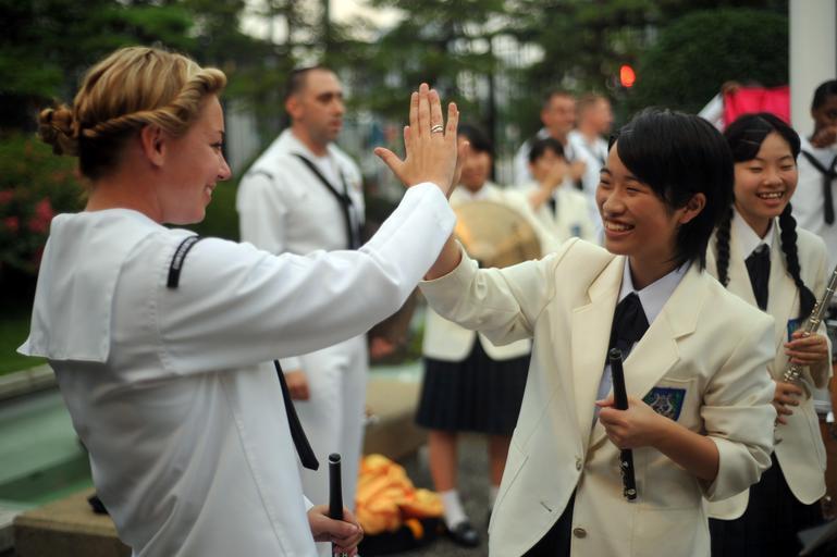| Keywords: Flickr - Official U.S. Navy Imagery - A Sailor celebrates with a member of Seika Girls High School..jpg HAKATA Japan Aug 11 2012 Musician 3rd Class Christa Vernon assigned to the U S 7th Fleet Band celebrates with a member of Seika Girls High School during after their performance during a concert in the American consulate in Fukuoka Japan U S Navy photo by Mass Communication Specialist 2nd Class Rafael Figueroa Medina/Released 120811-N-QI421-607 Join the conversation http //www facebook com/USNavy www facebook com/USNavy http //www twitter com/USNavy www twitter com/USNavy http //navylive dodlive mil navylive dodlive mil http //www flickr com/photos/usnavy/7781222266/ A Sailor celebrates with a member of Seika Girls High School 2012-08-11 16 50 http //www flickr com/people/56594044 N06 Official Navy Page from United States of America MC2 SW/AW Rafael Figueroa Medina/U S Navy U S Navy photo PD-USGov-Military-Navy Official U S Navy Imagery http //flickr com/photos/56594044 N06/7781222266 2012-11-12 22 29 48 cc-by-2 0 Images from United States Navy to check |