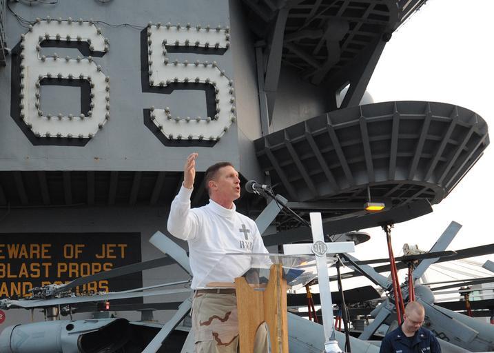 MAKE A MEME View Large Image Henry Holcombe delivers a sermon during Easter sunrise service..jpg ARABIAN SEA April 8 2012 Lt Cmdr Henry Holcombe a command chaplain delivers a sermon on the flight deck aboard the aircraft carrier USS Enterprise CVN 65 during Easter ...