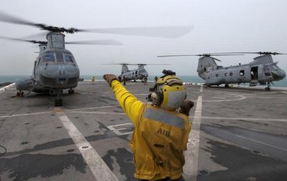 | Keywords: Flickr - Official U.S. Navy Imagery - A Sailor signals a helicopter to turn off its engine on the flight deck..jpg ARABIAN GULF Feb 1 2012 Aviation Boatswain ™s Mate Handling Airman Amadou Diallo signals a CH-46E Sea Knight helicopter assigned to the Red Dragons of Marine Medium Helicopter Squadron HMM 268 Reinforced to turn off its engine on the flight deck of the amphibious transport dock ship USS New Orleans LPD 18 New Orleans and embarked Marines assigned to the 11th Marine Expeditionary Unit 11th MEU are deployed as part of the Makin Island Amphibious Ready Group supporting maritime security operations and theater security cooperation efforts in the U S 5th Fleet area of responsibility U S Navy photo by Mass Communication Specialist 2nd Class Dominique Pineiro/Released 120201-N-PB383-376 http //www flickr com/photos/usnavy/6846515117/ A Sailor signals a helicopter to turn off its engine on the flight deck 2012-02-01 13 53 http //www flickr com/people/56594044 N06 Official Navy Page from United States of America Dominique Pineiro/U S Navy U S Navy photo PD-USGov-Military-Navy Official U S Navy Imagery http //flickr com/photos/56594044 N06/6846515117 2012-11-13 23 57 55 cc-by-2 0 Images from United States Navy to check United States Navy images |
