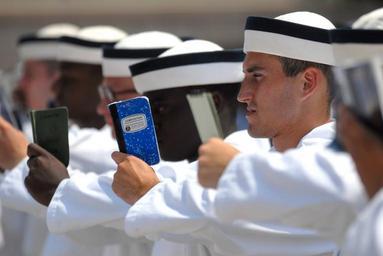 | Keywords: Flickr - Official U.S. Navy Imagery - Plebes in the U.S. Naval Academy Class of 2015 study their memorization notes prior to noon meal formation.jpg ANNAPOLIS Md July 25 2011 Plebes in the U S Naval Academy Class of 2015 study their memorization notes prior to noon meal formation in Tecumseh Court The new 4th class midshipmen are participating in Plebe Summer a six-week training regimen intended to transition the students from civilian to military life U S Navy photo by Mass Communication Specialist 1st Class Chad Runge/Released 110725-N-OA833-005 http //www flickr com/photos/usnavy/5987172475/ Plebes in the U S Naval Academy Class of 2015 study their memorization notes prior to noon meal formation 2011-07-25 11 03 http //www flickr com/people/56594044 N06 Official Navy Page from United States of America Mass Communication Specialist 1st Class Chad Runge/U S Navy Attribution License IPTC Source Navy Visual News Service PD-USGov-Military-Navy Official U S Navy Imagery http //flickr com/photos/56594044 N06/5987172475 2012-11-14 14 02 41 cc-by-2 0 Images from United States Navy to check |