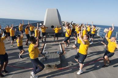 Keywords: Flickr - Official U.S. Navy Imagery - Sailors exercise on the deck of a ship at sea..jpg ARABIAN SEA Oct 10 2012 The Chief Petty Officer's Mess and the First Class Petty Officer's Mess of the guided-missile cruiser USS Hue City CG 66 conduct physical training on the foc ™sle of the ship for the start of CPO 365 a program designed to prepare the first class petty officers to become future chiefs Hue City is deployed to the U S 5th Fleet area of responsibility conducting maritime security operations theater security cooperation efforts and support missions as part of Operation Enduring Freedom The U S Navy has a 237-year heritage of defending freedom and projecting and protecting U S interests around the globe Join the conversation on social media using warfighting U S Navy photo by Mass Communication Specialist Seaman Darien G Kenney/Released 121010-N-NU634-046 Join the conversation http //www facebook com/USNavy www facebook com/USNavy http //www twitter com/USNavy www twitter com/USNavy http //navylive dodlive mil navylive dodlive mil http //www flickr com/photos/usnavy/8093616256/ Sailors exercise on the deck of a ship at sea 2012-10-10 16 04 http //www flickr com/people/56594044 N06 Official Navy Page from United States of America MCSN Darien G Kenney/U S Navy Attribution License IPTC Caption-Abstract U S Navy photo PD-USGov-Military-Navy Official U S Navy Imagery http //flickr com/photos/56594044 N06/8093616256 2012-11-12 02 25 44 cc-by-2 0 Images from United States Navy to check |
