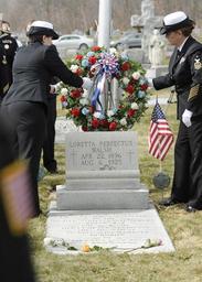 Keywords: Flickr - Official U.S. Navy Imagery - Wreath-laying ceremony for 1st female enlisted Sailor and 1st female Chief, Loretta Perfectus Walsh..jpg BLAKELY Penn April 2 2011 Chief Yeoman Carissa Pokorny Golden left noncommissioned officer in charge of Navy Operational Support Center NOSC Avoca and Senior Chief Yeoman Joann Barnes assigned to the Third Navy Expeditionary Logistics Regiment in Ft Dix N J lay a wreath on the gravesite of Loretta Perfectus Walsh the first woman enlisted and the first female to reach the rank of chief petty officer in the U S Navy NOSC Avoca honored Walsh by hosting a rededication and wreath laying ceremony U S Navy photo by Mass Communication Specialist 2nd Class Katrina Parker/Released http //www flickr com/photos/usnavy/5601191814/ Wreath-laying ceremony for 1st female enlisted Sailor and 1st female Chief Loretta Perfectus Walsh 2011-04-02 22 39 http //www flickr com/people/56594044 N06 Official Navy Page from United States of America Mass Communication Specialist 2nd Class Katrina Parker/U S Navy Attribution License XMP-photoshop Source Navy Visual News Service PD-USGov-Military-Navy Official U S Navy Imagery http //flickr com/photos/56594044 N06/5601191814 2012-11-15 14 53 40 cc-by-2 0 Images from United States Navy to check Memorial wreaths |