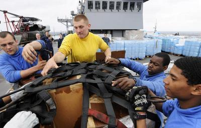 Keywords: Flickr - Official U.S. Navy Imagery - Sailors stage pallets of humanitarian assistance aboard USS Blue Ridge..jpg EAST CHINA SEA March 20 2011 ” Seaman Kameron Maison left Culinary Specialist 3rd Class Drew Iverson Aviation Ordnanceman Airman Brandon Frasier and Seaman Nicholas Constable stage pallets of humanitarian assistance and disaster relief supplies aboard 7th Fleet command ship USS Blue Ridge LCC 19 for transfer during a replenishment at sea Blue Ridges staged supplies in preparation to support humanitarian aid and disaster relief efforts in Japan Blue Ridge is commanded by Capt Rudy Lupton and serves under Commander Expeditionary Strike Group ESG 7/Task Force CTF 76 the Navy's only forward deployed amphibious force Blue Ridge is the command flagship for Commander U S 7th Fleet Task Force 76 is headquartered at White Beach Naval Facility Okinawa Japan with an operating detachment in Sasebo Japan U S Navy photo by Mass Communication Specialist 1st Class Josh Huebner /Released http //www flickr com/photos/usnavy/5567790835/ Sailors stage pallets of humanitarian assistance aboard USS Blue Ridge 2011-03-28 11 21 http //www flickr com/people/56594044 N06 Official Navy Page from United States of America MC1 SW Josh Huebner/U S Navy Attribution License XMP-photoshop Source Navy Visual News Service PD-USGov-Military-Navy Official U S Navy Imagery http //flickr com/photos/56594044 N06/5567790835 2012-11-15 14 58 18 cc-by-2 0 Images from United States Navy to check |