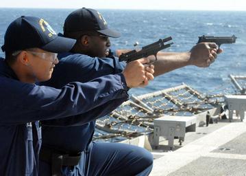 | Keywords: Flickr - Official U.S. Navy Imagery - Sailors fire M9 service pistols during arms qualifications..jpg ARABIAN SEA Dec 30 2010 Logistics Specialist 2nd Class Alexander Castillo left and Information Systems Technician 1st Class Cyrus Fluitt fire M9 service pistols during small arms qualifications aboard the guided-missile cruiser USS Lake Champlain CG 57 Lake Champlain is deployed with Commander Task Force 151 supporting maritime security operations and theater security cooperation efforts in the U S 5th Fleet area of responsibility U S Navy photo by Mass Communication Specialist 1st Class Michael O'Day/Released http //www flickr com/photos/usnavy/5512842492/ Sailors fire M9 service pistols during arms qualifications 2010-12-29 23 43 http //www flickr com/people/56594044 N06 Official Navy Page from United States of America MC1 Michael O'Day/U S Navy Attribution License IPTC Source Navy Visual News Service PD-USGov-Military-Navy Official U S Navy Imagery http //flickr com/photos/56594044 N06/5512842492 2012-11-15 20 52 58 cc-by-2 0 Images from United States Navy to check |
