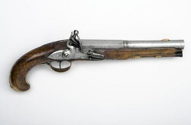 Keywords: Flintlåspistol - Livrustkammaren - 22544.jpg Rund slätborrad pipa av stål med åttsidig kammare ringar vid övergången Spår av punsad dekor på kammaren Graverade rocailler och blad på svansskruvbladet Under kammaren tre otydliga stämplar och en fembladig blomma inom en cirkel <br/>Riktmedel Spolformigt korn av mässing <br/>Fästning Två häften Pipan fäst med krysskruv samt ett urspr två pipstift <br/><br/>Flintlås av stål med välvt låsbleck kantlinjer runt bleck och hane S-formig hane med lös överkäke käkskruv med päronformigt huvud Rundad fängpanna Eldstål med låg mittås på ryggen Batterifjäder med flik <br/>Fästning Två låsskruvar <br/>C-formig avtryckare Konturerat avtryckarbleck av stål <br/><br/>Helstock av valnöt med snidade kanter runt beslagen och asymmetriska bladornament på kolvnacke och vid spetsrörka Kort nedåtsvängd kolv med markerad tå Näsband av horn övriga beslag av förgylld mässing med rokoko-ornament Kolvkappa med mittflik och symmetrisk dekor Helt sidbleck med dekor vid skruvarna och bakänden En + en profilerad rörka Varbygel med kluven bakre stolpe <br/><br/>Tillbehör <br/>Laddstock av trä l 217 mm med mörk hornskoning original caption flintlåspistol - LRK 4985<br/> Nyckelord Pistol Flintlåspistol Föremålsbild mid other date century 18 horn e7 - eldvapen - stockbeslag material horn - steel e12 - eldvapen - pipa och lås material stål - walnut e3 - eldvapen - stock material valnöt - brass e7 - eldvapen - stockbeslag material mässing size mm 358 size mm 214 pipa size mm 109 g 810 LRK H C o fembladig blomma i cirkel anv e2 - eldvapen - lås; anonym pipsmed place of origin original filename lm_dig2160 41544 inventory number LRK 4985 22544 CC-BY-SA Göran Schmidt <gallery caption Different images of same object > File Flintlåspistoler - Livrustkammaren - 43100 tif File Flintlåspistoler - Livrustkammaren - 34542 tif </gallery> Göran Schmidt Flintlock pistol Images from Livrustkammaren Media contributed by LSH dim-with multiple size templates Color images from Livrustkammaren Media contributed by LSH 2013-10