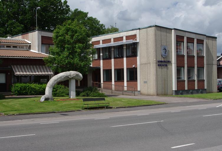 | Keywords: Floby kommunalhus och bibliotek.JPG en Floby town hall and library sv Floby kommunalhus och bibliotek Byggnaden var kommunalhus i Vilske kommun fram till årsskiftet 1973/1974 då kommunen uppgick i Falköpings kommun I byggnadsdelen som delvis ses till vänster har tidigare varit polisstation Sparbanken Falköpings Tidnings lokalredaktion och Försäkringskassan I nedervåningen av byggnadsdelen till höger var tidigare postkontor medan övervåningen fortfarande hyser Floby bibliotek Vapnet på väggen till höger är Vilske kommunvapen föreställande ett årder och en skära Blasoneringen lyder I silver ett vänstervänt blått årder med dragåsen uppåtriktad och överlagt med en svart skära Skulpturen framför kommunalhuset är Björn Terkelssons verk Midgårdsormen vilket kritiserades hårt när det sattes upp 1996 own Nasko 2011-06-23 58 136848 13 337496 heading NW Cc-zero Floby June 2011 in Sweden Björn Therkelson |