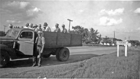 | Keywords: blackandwhite monochrome outdoor black and white 2012-0239m on the back: "M. J. Neufeldt, Inman, Kansas, Hebron Church (Buhler) group on way home (45 miles) after day's work flood clean up at Florence" Can anyone put a date on this photo or identify any of the people? 2012-0239m on the back: "M. J. Neufeldt, Inman, Kansas, Hebron Church (Buhler) group on way home (45 miles) after day's work flood clean up at Florence" Can anyone put a date on this photo or identify any of the people? |