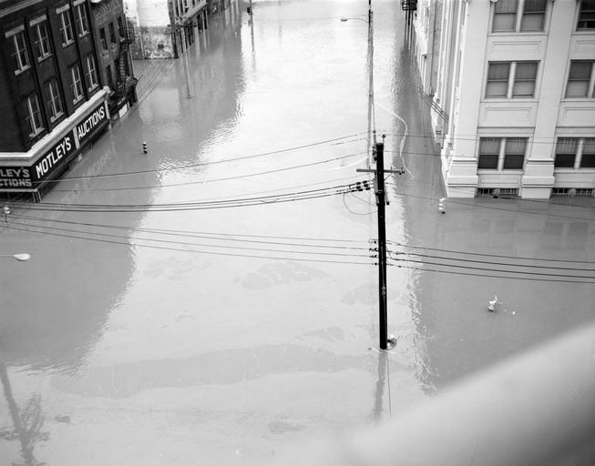 | Keywords: richmond va usa hurricane agnes hurricaneagnes virginia flood flooding natural disaster richmond va usa naturaldisasterrichmondvausa blackandwhite monochrome outdoor black and white Telephone poles are knee-deep in standing water in this view of Shockoe Bottom from the I-95 bridge. No. 72-960, Virginia Governor's Negative Collection, Library of Virginia. Telephone poles are knee-deep in standing water in this view of Shockoe Bottom from the I-95 bridge. No. 72-960, Virginia Governor's Negative Collection, Library of Virginia. |