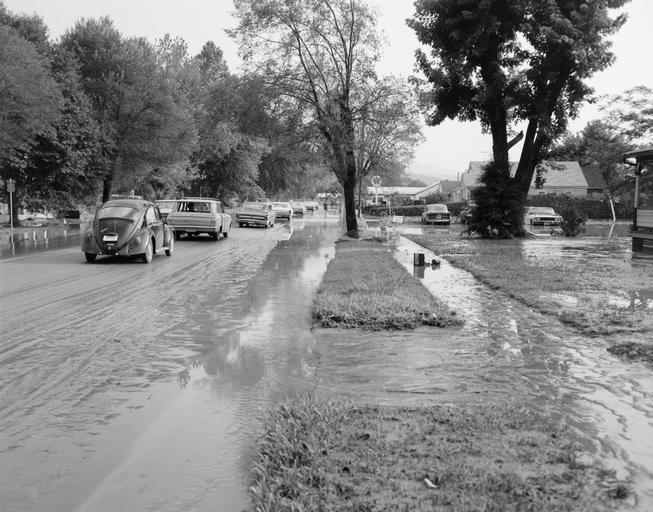 | Keywords: richmond va usa hurricane camille hurricanecamille flood flooding damage natural disaster naturaldisaster virginia richmond va usa virginiarichmondvausa blackandwhite monochrome outdoor black and white Though yards and driveways were still underwater, traffic was able to move both directions on Magnolia Avenue in Buena Vista, Virginia following Hurricane Camille. The small town in Rockbridge County recorded 5 feet of standing water in the downtown area. No. 69-1177, Virginia Governor's Negative Collection, Library of Virginia. Though yards and driveways were still underwater, traffic was able to move both directions on Magnolia Avenue in Buena Vista, Virginia following Hurricane Camille. The small town in Rockbridge County recorded 5 feet of standing water in the downtown area. No. 69-1177, Virginia Governor's Negative Collection, Library of Virginia. |