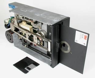 | Keywords: Floppy Disk Drive 8 inch.jpg Qume 8 inch Floppy Disk Drive Announced October 1978 cite journal Michalopoulos D A New Products Computer 11 12 81 1978-12 http //ieeexplore ieee org/iel5/2/34530/01646804 pdf isnumber 34530 prod JNL arnumber 1646804 arnumber 1646804 arSt +81 ared +84 arAuthor Michalopoulos 2C+D A <blockquote>A new dual-sided double-density diskette drive reduces media wear to far below industry norms according to Qume Corporation The company has obtained an exclusive right to manufacture the drive for the North American and European markets from Y E Data Japan's leading supplier of floppy disk drives </blockquote> Six paragraphs of press release omitted <blockquote> The DataTrak 8 stores 1 6M bytes of unformatted data and 1 2M bytes of IBM-formatted data Track-to-track access time is three msecs average access time is 91 msecs and settling time is 15 msecs The drive's data transfer rate is 500K bits per second Standard options include file protection programmable door lock and activity light The drive is compatible with all existing drives including IBM </blockquote> <blockquote>The DataTrack 8 is immediately available and is priced at 755 in OEM quantities of 1-24 </blockquote> Qume April 1979 Memory Products DataTrak 8 Products Specifications Qume Manual http //www bitsavers org/pdf/qume/30006_QumeTrak842pd_Apr79 pdf Power Requirements 115 VAC 0 8A Max 24 VDC 1 0A Max 5 VDC 1 3A Max Power Dissipation 55 watts Mechanical Height 117 mm 4 55 inch Width 217 mm 8 55 inch Depth 370 mm 14 57 inch Weight 6 kg 13 lbs Photo by Michael Holley July 2007 Taken with a Canon PowerShot A630 1/5 second and f/8 under tungsten lighting The image was touched up with Adobe Photoshop Elements 3 0 Own 2007-07 Swtpc6800 en User Swtpc6800 Michael Holley File Floppy Disk Drives 8 5 3 jpg 8 floppy disk drives Qume 3M Photographs by User Swtpc6800 |