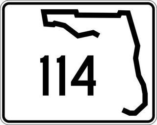 Keywords: Florida 114.svg 30 in by 24 in 750 mm by 600 mm Florida State Road shield made to the specifications of the http //www dot state fl us/rddesign/rd/RTDS/17355s1-12of12 pdf sign detail Uses the http //www triskele com/fonts/index html Roadgeek 2005 fonts United States law does not permit the copyrighting of typeface designs and the fonts are meant to be copies of a U S Government-produced work anyway The outside border has a width of 1 1/16 in and a color of black so it shows up; in reality signs have no outside border Note that the drawing does not provide the border width or curve radii The previous page does but seems very inaccurate Thus those measurements are approximated from the drawing The state outline is extracted from the PDF and cleaned up to make the inside match the outside own SPUI spuiother Florida State Road shields 114 114 number