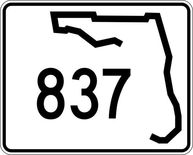 Keywords: Florida 837.svg 30 in by 24 in 750 mm by 600 mm Florida State Road shield made to the specifications of the http //www dot state fl us/rddesign/rd/RTDS/17355s1-12of12 pdf sign detail Uses the http //www triskele com/fonts/index html Roadgeek 2005 fonts United States law does not permit the copyrighting of typeface designs and the fonts are meant to be copies of a U S Government-produced work anyway The outside border has a width of 1 1/16 in and a color of black so it shows up; in reality signs have no outside border Note that the drawing does not provide the border width or curve radii The previous page does but seems very inaccurate Thus those measurements are approximated from the drawing The state outline is extracted from the PDF and cleaned up to make the inside match the outside own SPUI spuiother Florida State Road shields 837 837 number |