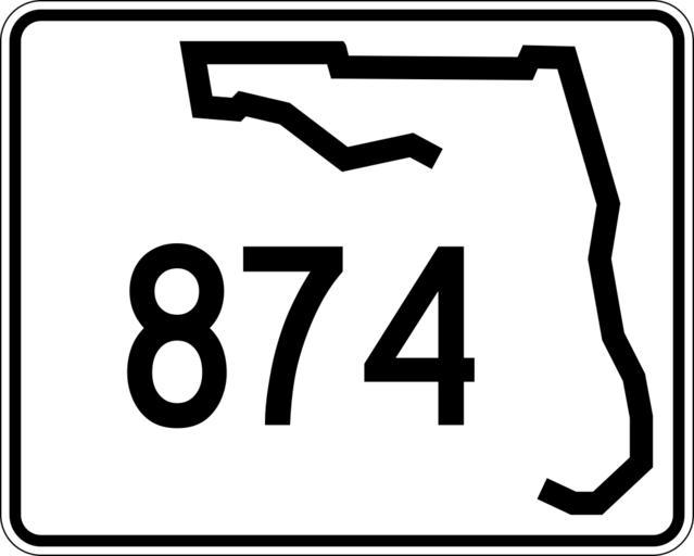 | Keywords: Florida 874.svg 30 in by 24 in 750 mm by 600 mm Florida State Road shield made to the specifications of the http //www dot state fl us/rddesign/rd/RTDS/17355s1-12of12 pdf sign detail Uses the http //www triskele com/fonts/index html Roadgeek 2005 fonts United States law does not permit the copyrighting of typeface designs and the fonts are meant to be copies of a U S Government-produced work anyway The outside border has a width of 1 1/16 in and a color of black so it shows up; in reality signs have no outside border Note that the drawing does not provide the border width or curve radii The previous page does but seems very inaccurate Thus those measurements are approximated from the drawing The state outline is extracted from the PDF and cleaned up to make the inside match the outside own SPUI spuiother Florida State Road shields 874 874 number |