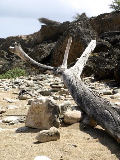 Keywords: flotsam and jetsam beach old dead dead plant mood warm trist sad still trueb barren tree wood stones rock stone rocks rocky rocky coast holiday boulders rocky hill nature landscape curacao caribbean booked boka kalki sand hot