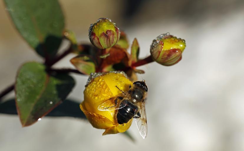 Keywords: flower bee insect flowers macro plant nature garden summer color dewdrop yellow
