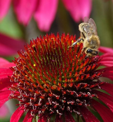 Keywords: flower bee nature garden macro plant red flower