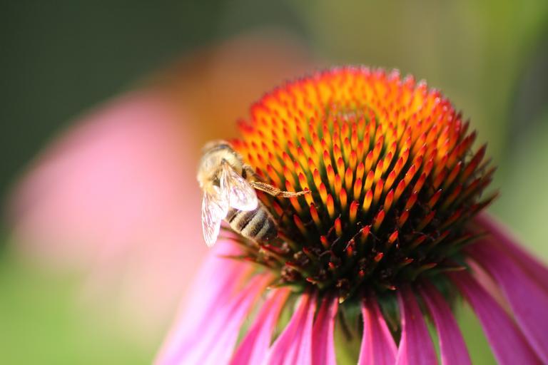 Keywords: flower bee red blossom bloom sun hat plant nature