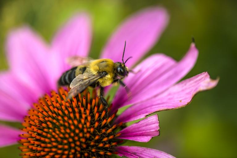 Keywords: flower bee summer season echinacea beautiful wing sun macro closeup meadow outdoor color environment lawn nature garden landscape
