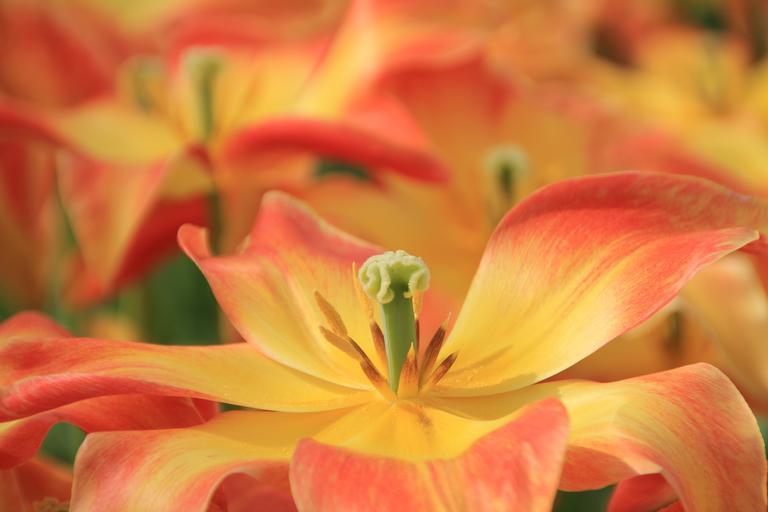 Keywords: flower blossom bloom calyx red yellow plant open cup summer green meadow garden nursery floristry