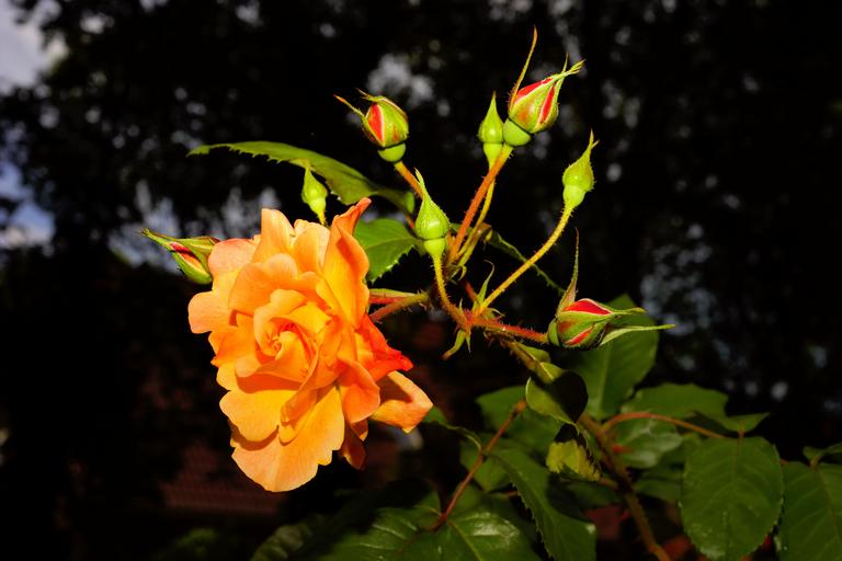 Keywords: flower blossom bloom rose fragrance noble beauty nature plant close filigree bright garden ornament beautiful prickly color orange discreet of course summer bloom fragrant rose