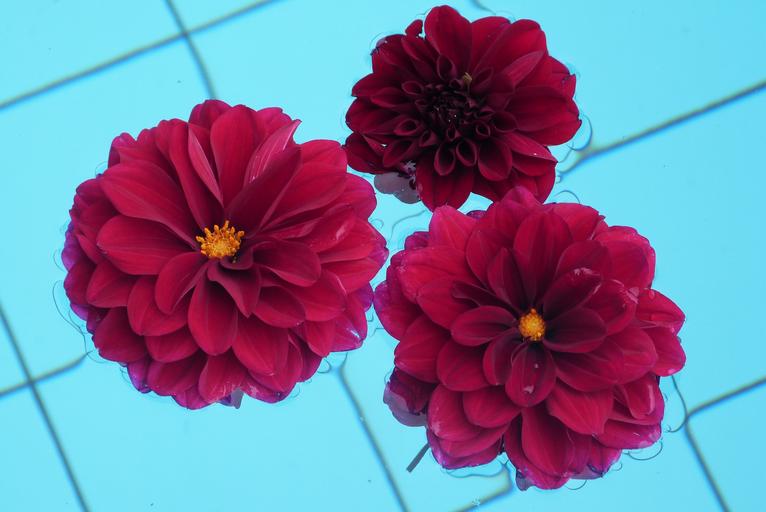 Keywords: flower dahlia red flower red dahlia nature garden pool summer
