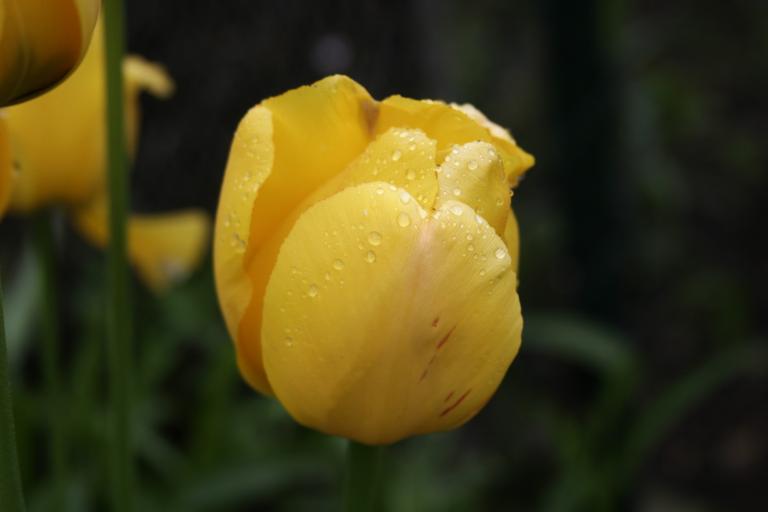 Keywords: flower flowers flora yellow flower garden tulip tulips nature rain plant raindrop close