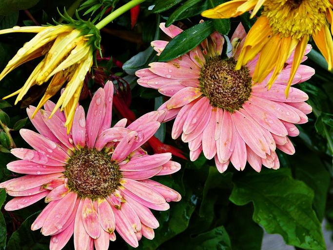 Keywords: flower gerbera pink raindrops nature plant floral blossom color fresh petal garden macro