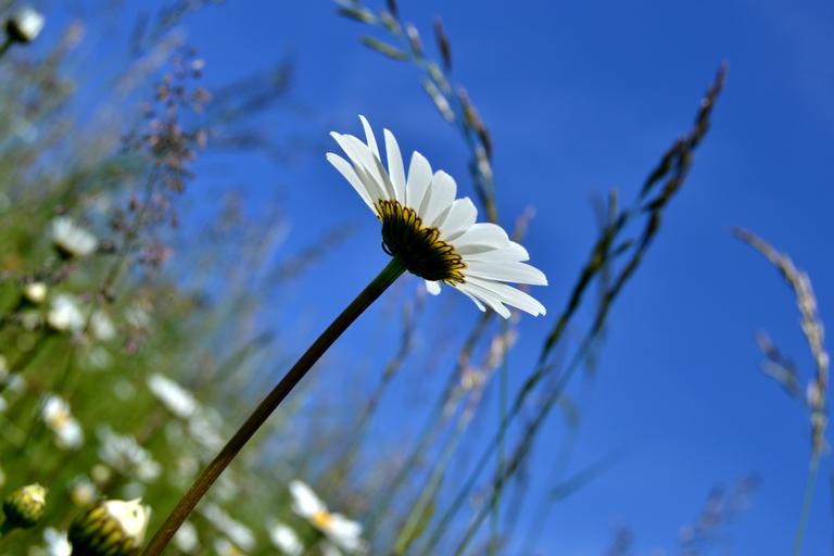 Keywords: flower marguerite leucanthemum composites asteraceae spring summer blossom bloom nature sky meadow white daisies summer meadow