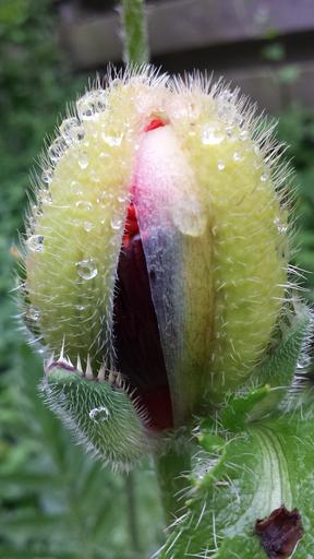 Keywords: flower open poppy red flower dew morning rain drop