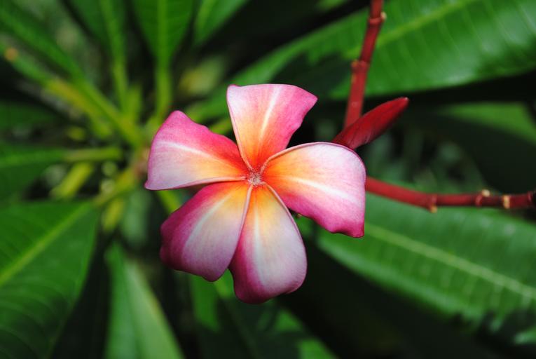 Keywords: flower plumeria frangipani nature blossom tropical exotic bloom plant leaf pink green flora spring summer garden botany foliage floral