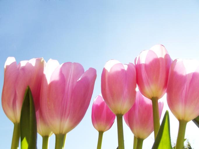 Keywords: flower tulip pink spring nature floral bloom green blossom color fresh day plant natural bright blooming summer stem sky blue