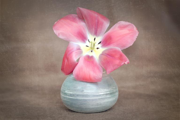 Keywords: flower tulip red blossom bloom petals pistil flower stamp vase close still life spring flower schnittblume