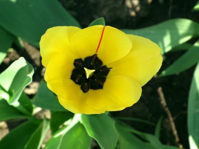 Keywords: flower tulip yellow garden flower spring bright tulips green flowers bloom leaves nature sheet greens yellow flowers beautiful garden garden flowers green leaves
