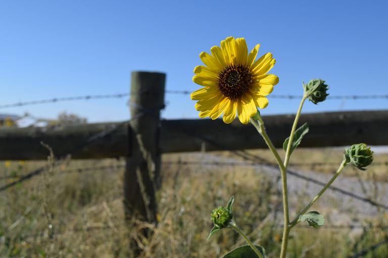 Keywords: flower wild nature desert yellow wilderness sunflower sky outdoors wildlife landscape south fence