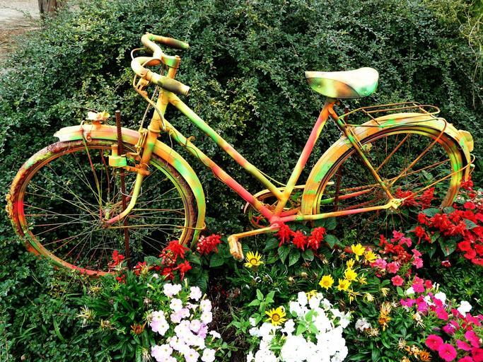 Keywords: flowers bicycle flower bed bike cycle sport leisure exercise cyclist biking cycling transportation pedal spoke tire wheel colors floral plants natural blossom bloom petals botanical organic stem botany herb agriculture outdoors environment leaf vegetation horticulture