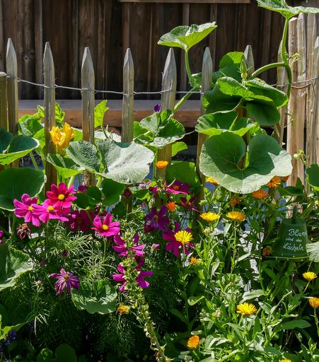 Keywords: flowers blossom bloom fence fence lath cottage garden garden bloom