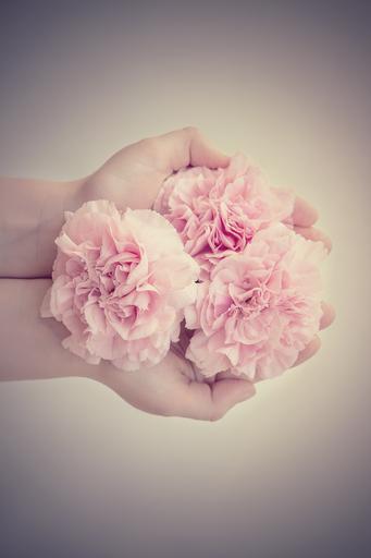 Keywords: flowers cloves pink pink flowers from above cut flowers hand held protected keep hands in the hand vintage-look close