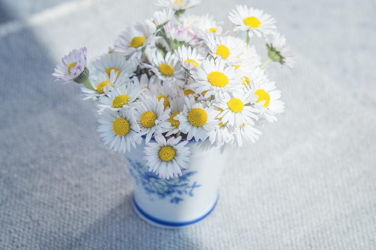 Keywords: flowers daisy white wildflowers vase bouquet table close