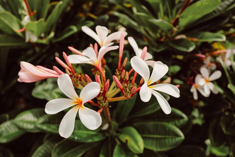 Keywords: flowers green white plumeria nature plant floral summer leaf garden flowers background natural blossom hawaii maui