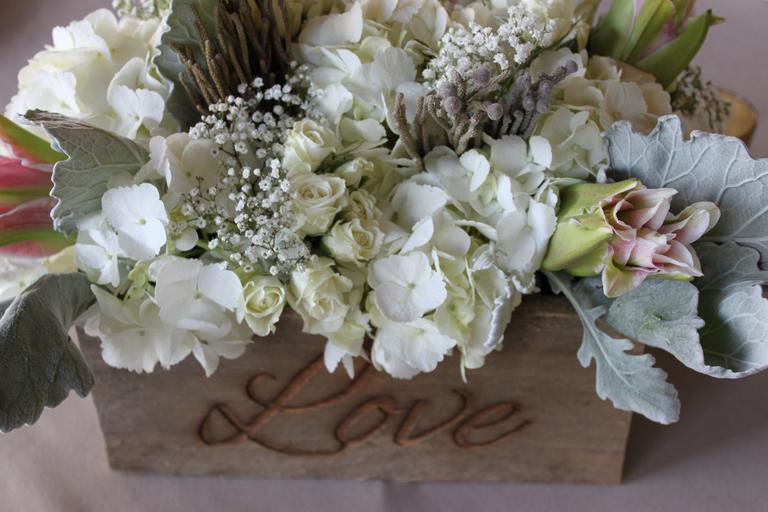 Keywords: flowers rose valentine romance white petals floral wedding love bud nature bridal fresh white rose elegant romantic bloom pink dusty miller hydrangea blossom love box centerpiece marriage stargazer lilly